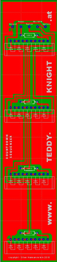 Da dies nicht genug ist, habe ich auch gleich eine Platine für den Countdownsequenzer entwickelt. Dieser findet sich oberhalb der Voicebox im Dash.
