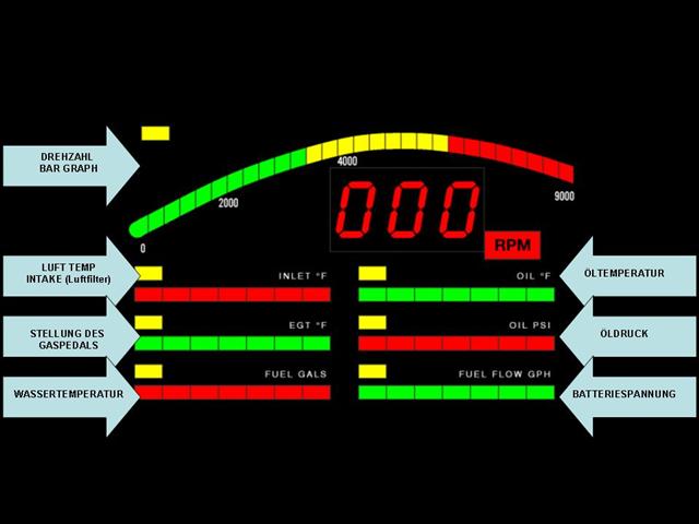 Meine Konzentration widmete ich dem Drehzahlmesser und den 6 Pegelanzeigen, welche auf diesem Bauteil zu finden sind.