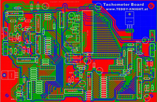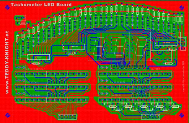 Das Board an sich findet man im Armaturenbrett gleich rechts neben der Voicebox. Wie man am Layout sehen kann sind viele Bauteile verbaut und es ergibt sich ein wahres Netz an Leiterbahnen.
