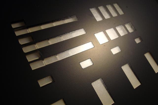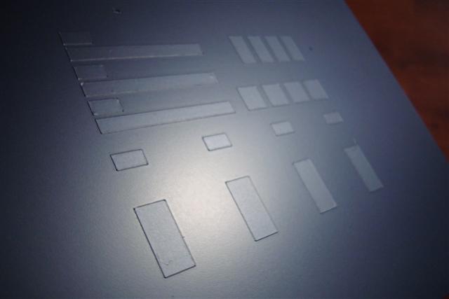 Sobald der Lack trocken war, konnte ich die Folien entfernen und schon war das Overlay wie ich es wollte. Nun konnte es wieder an die Beschriftung gehen. Im ersten Test mal wieder mit Rubbelbuschstaben, welche sich natürlich auch hier wieder ablösen werden. Aber ein Freund meinte das man das auch gravieren lassen kann.